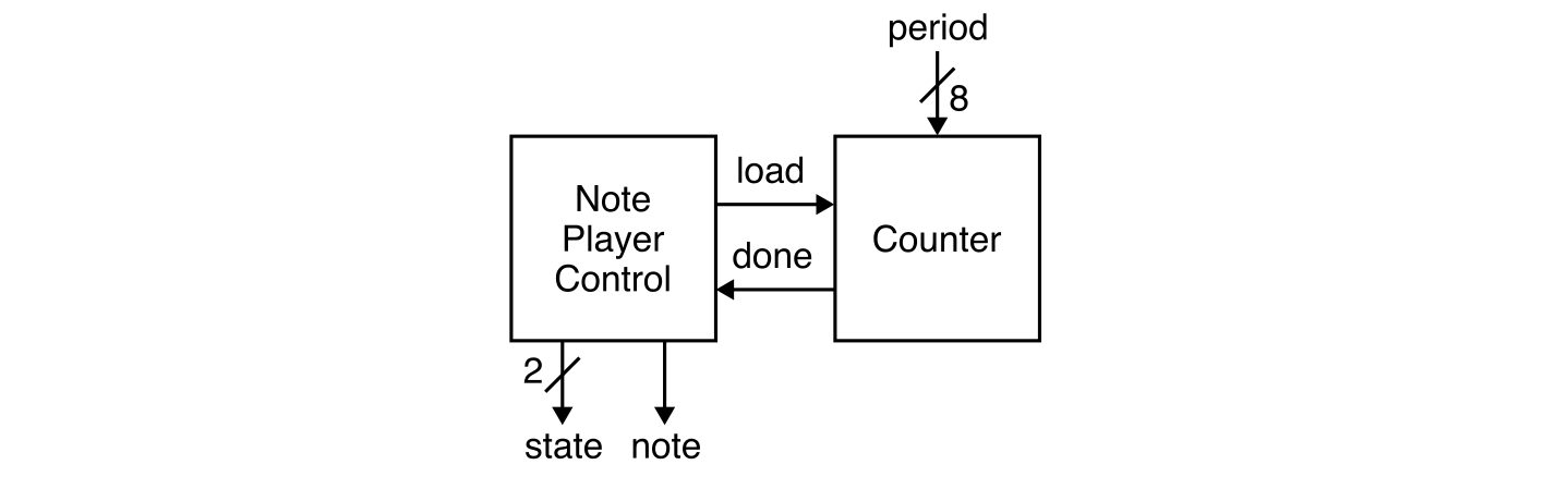 The switches will set the period of the note player. Here is a table showing the mapping from inputs to notes.