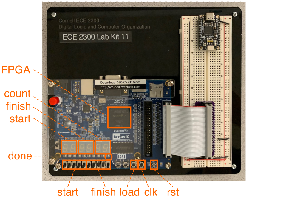 When you are finished with your demo, pack up your ECE 2300 Lab Kit. Return the FPGA board and USB cable to a TA who will then record the kit number on your check-off sheet, initial the final check-off, and then collect your check-off sheet.